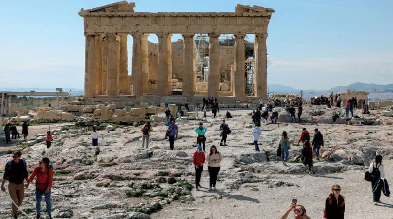 معبد بارثينون القديم على قمة تل أكروبوليس الأثري في أثينا (رويترز)