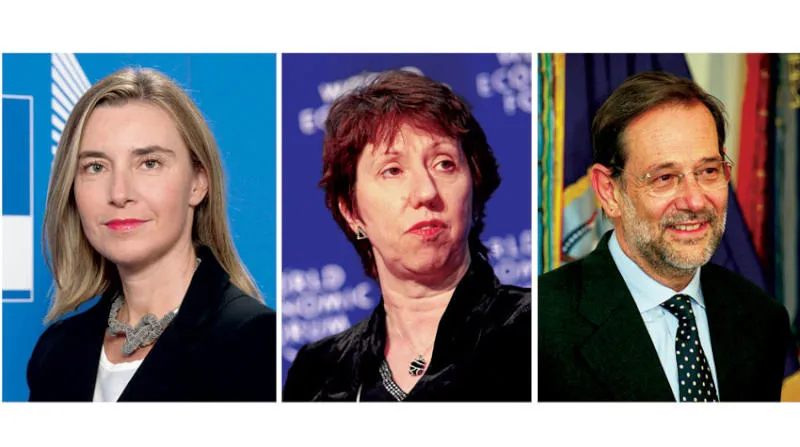بعد آشتون تولّت المنصب امرأة يسارية أخرى هي الإيطالية فيديريكا موغيريني التي كانت تشغل منصب وزيرة الخارجية في الحكومة اليسارية الإيطالية التي رأسها زعيم الحزب الديمقراطي ماتّيو رنزي. وموغيريني مجازة في العلوم السياسية وتحمل شهادة دكتوراه في الفلسفة السياسية نالتها على أطروحة حول العلاقة بين الدين والسياسة في الإسلام. وكان سبق لها أن انخرطت في الحزب الشيوعي الإيطالي عندما كان إنريكو برلنغوير، أمينه العام قبل أن ينحلّ بعد سنوات من وفاته، وينشأ من قواعده حزب اليسار الديمقراطي الذي تولّت فيه موغيريني مناصب قيادية.