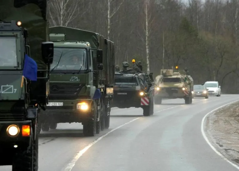 قافة عسكرية ألمانية في طريقها إلى قاعدة روكلا في ليتوانيا (رويترز)
