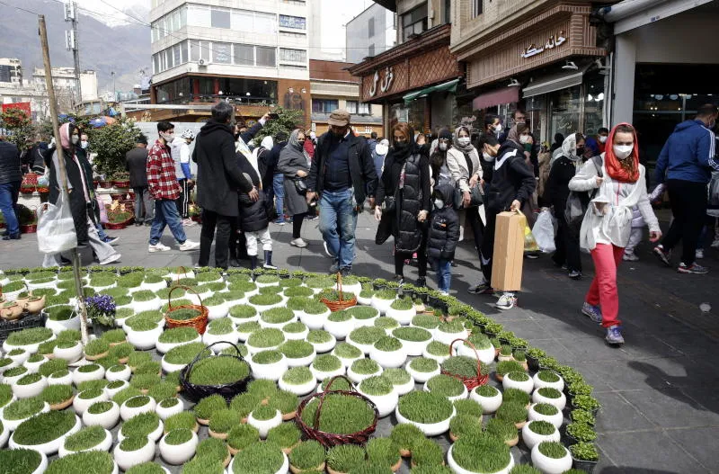 إيرانيون يتسوقون استعدادا لعيد النوروز في أحد شوارع طهران (إ.ب.أ)