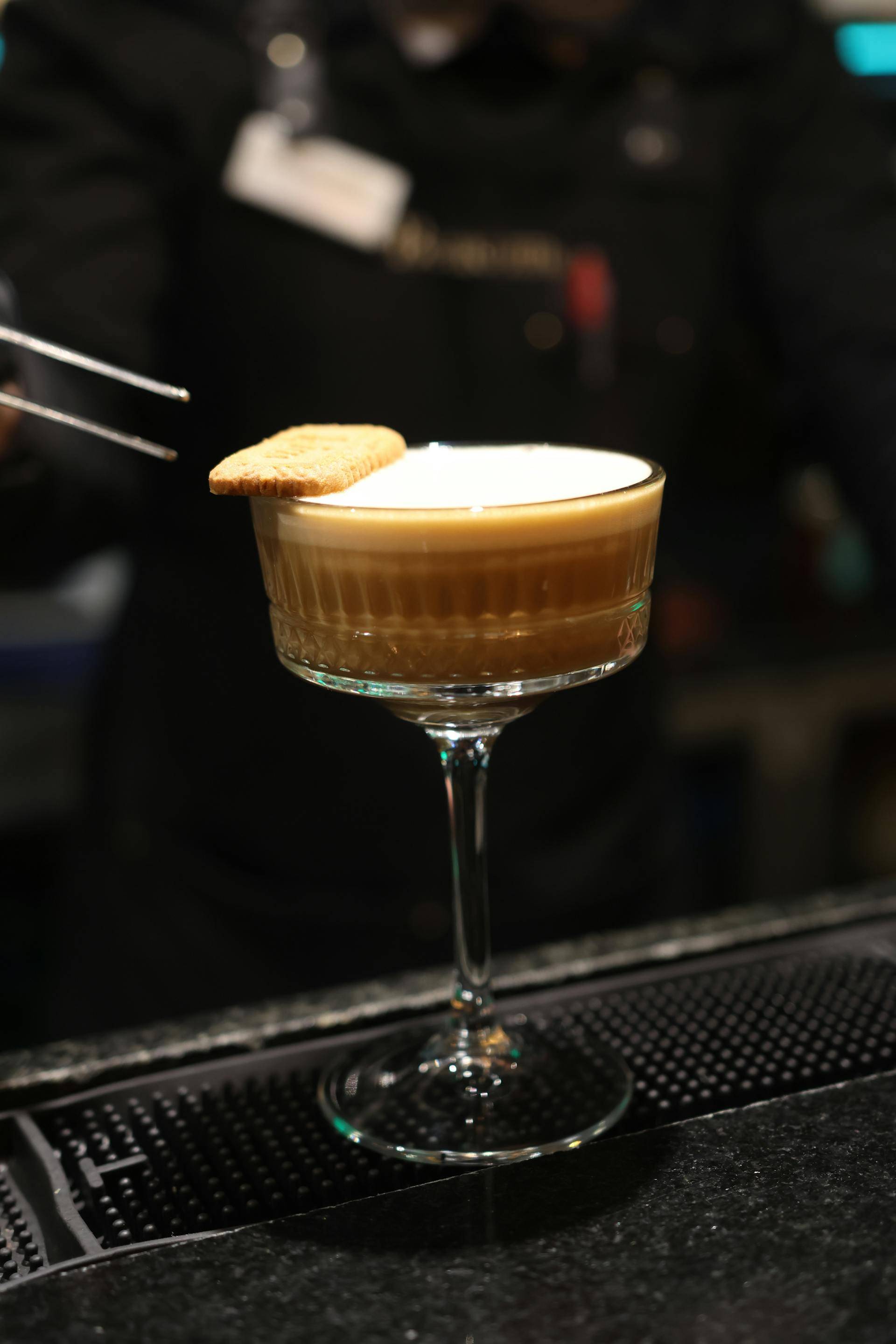 كما تصطف مربعات الشوكولاته على الجدران؛ وتثير الحواف المُسنّنة للطاولات ذات اللون البني الفاتح، في الأذهان صورة بسكويت الزبدة الفرنسي الكلاسيكي «LU»؛ وتتدلى من السقف منحوتات عملاقة لامعة من الفول السوداني الكامل، وقرون الكاكاو، والفستق.