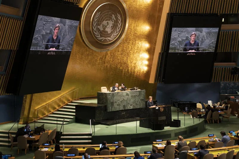 جانب من المناقشات في الجلسة الاستثنائية للجمعية العامة للأمم المتحدة في نيويورك اليوم (أ.ب)