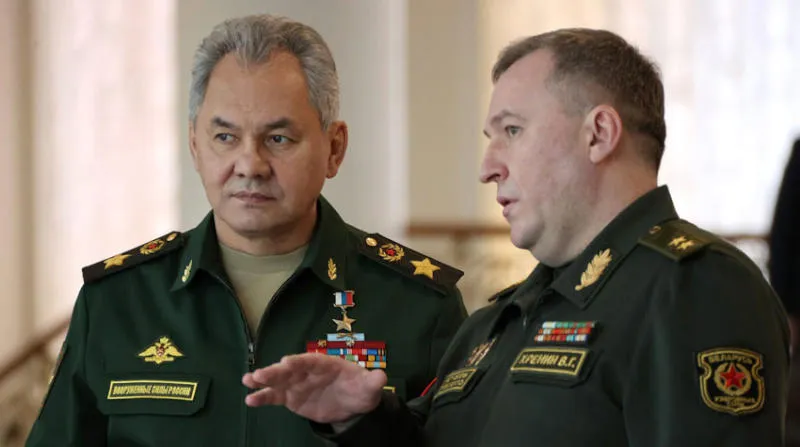 صورة لوزير الدفاع الروسي (يسار) مع نظيره البيلاروسي تعود للثالث من فبراير الماضي (إ.ب,أ)