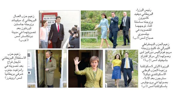 وكان من المتوقع أن تظهر النتائج الأولية في وقت متأخر من مساء أمس، على أن يعلن اليوم توزيع أصوات الناخبين. وإذا صحت استطلاعات الرأي حول توجهات الناخبين، من المتوقع أن تكون الأصوات موزعة بين الحزبين الرئيسيين، المحافظين بزعامة رئيس الوزراء البريطاني ديفيد كاميرون والعمال بزعامة رئيس المعارضة البريطاني إد ميليباند، من دون أغلبية مطلقة لأي من الحزبين مما يستوجب تشكيل حكومة ائتلافية مجددا. وإذا كانت النتيجة متقاربة على ما تشير إليه الاستطلاعات منذ ستة أشهر، فان كاميرون وميليباند قد يعلنان الفوز صباح اليوم.