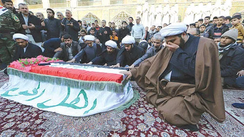 عراقيون يبكون على جنازة أحد أعضاء جماعة «عصائب أهل الحق» العراقية الموالية لنظام بشار الأسد قتل في اشتباكات مع الجيش السوري الحر (رويترز)