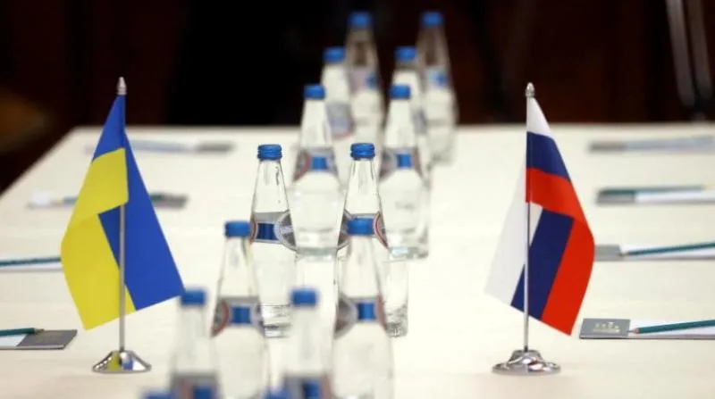 علما روسيا وأوكرانيا على طاولة المفاوضات (رويترز)