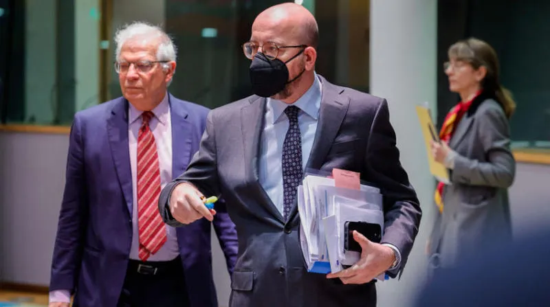 وزير خارجية الاتحاد الأوروبي جوزيب بوريل مع رئيس المجلس الأوروبي شارل ميشال(ا.ف.ب)