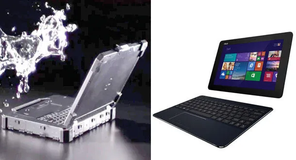 تطرح الشركات المصنعة للأجهزة الكثير من الكومبيوترات المحمولة في الأسواق، ولكنها كثيرا ما تتشابه في التصاميم والمواصفات التقنية. ولكن سيعجبك كومبيوتران جديدان من «ديل» و«أسوس» طرحا أخيرا في المنطقة العربية بتقديمهما ابتكارات كبيرة في التصاميم، مع الحفاظ على مستويات الأداء العالية، حيث يقدم الأول كومبيوترا محمولا يعمل في ظروف تشغيلية قاسية جدا ويتحمل الصدمات والبلل والغبار ودرجات الحرارة الشديدة، بالإضافة إلى جهاز ثان يتحول من كومبيوتر محمول إلى لوحي بكل سهولة، وبسماكة هي الأقل في العالم للأجهزة التي تعمل بنظام التشغيل «ويندوز». واختبرت «الشرق الأوسط» الجهازين، ونذكر ملخص التجربة.