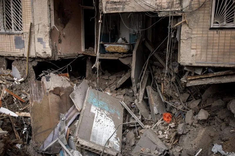 دمار جراء القصف الروسي على مدينة خاركيف الأوكرانية اليوم (رويترز)