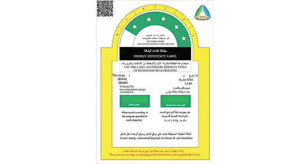 وأهاب البرنامج بجميع التجار والمصنعين التحقق من وجود المعلومات على بطاقة كفاءة الطاقة للثلاجات التي تشمل أربعة عناصر، هي التأكد من وجود رقم المواصفة 2664/2013، ووجود الشعار الجديد للهيئة السعودية للمواصفات والمقاييس والجودة على يمين البطاقة في الأعلى، وكذلك وجود رمز الاستجابة السريع (QR) أعلى البطاقة في اليسار، بالإضافة إلى وجود النص النظامي باللون الأحمر أسفل البطاقة الذي يحذر من إزالة أو تعديل البطاقة.