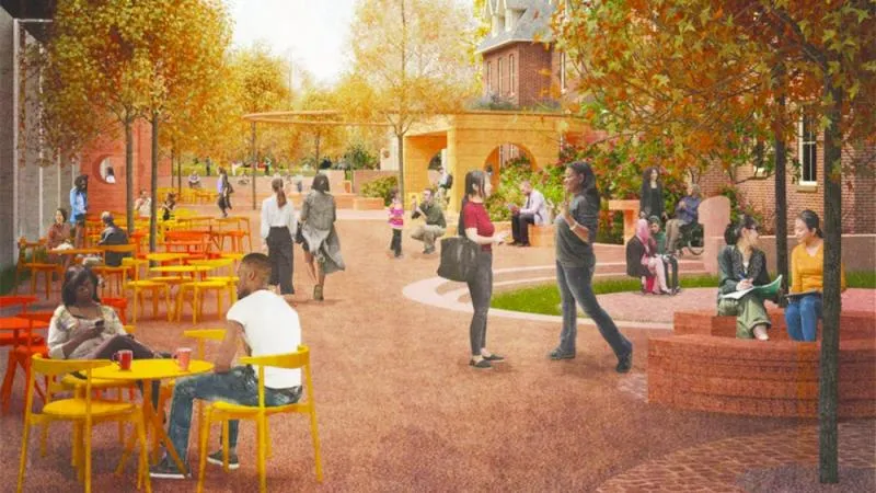 من شأن فكرة «طريق الإبداع» تشجيع الناس على التوقف والدردشة، مع المساحات المخصصة للمحادثة، والمقاعد ذات الطراز المدرج. كما أنها ستعمل كمساحة انتقالية بين الجامعة والمنطقة، وستكون «طريق الإبداع» متاحة للعامة من الفجر إلى الغسق، وستخدم مساحة التجزئة في الطابق الأرضي الجمهور.