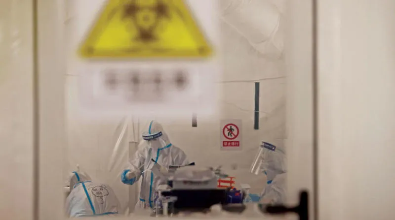 باحثون في مختبر خاص بمرض فيروس كورونا في شنغهاي - الصين 11 أبريل 2022 (رويترز)