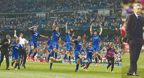المدرب أنشيلوتي قد يدفع ثمن فشل الريـال (أ.ب) - لاعبو يوفنتوس يحتفلون بتأهلهم لنهائي دوري الأبطال وإطاحتهم بالريـال (أ.ب)