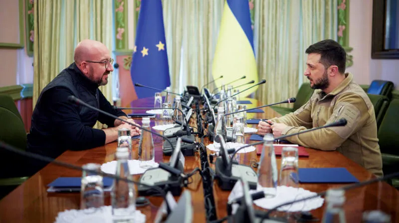 جانب من محادثات زيلينسكي وميشال في كييف الأربعاء (إ.ب.أ)