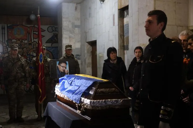 أقارب وأصدقاء يحضرون مراسم جنازة جندي أوكراني لاقى حتفه في أوديسا (أ.ف.ب)