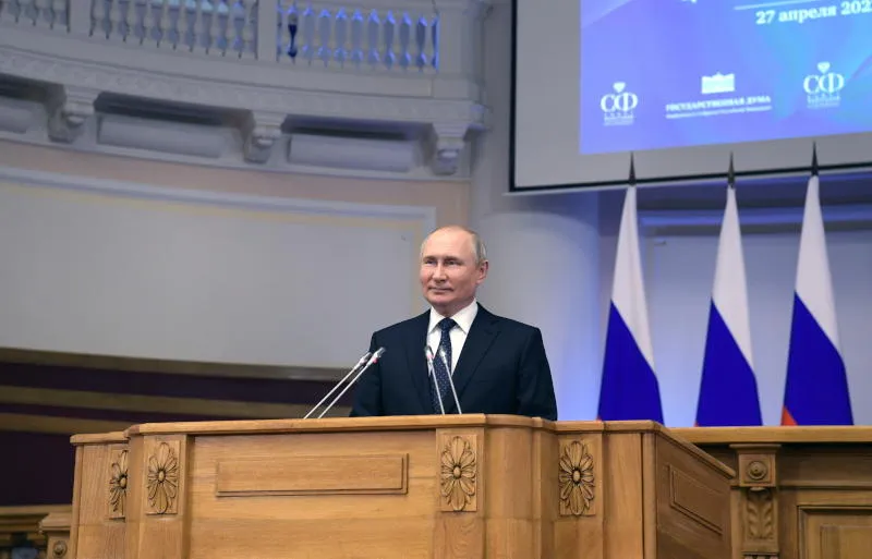 بوتين خلال إلقائه كلمته أمام البرلمان الروسي (إ.ب.أ)