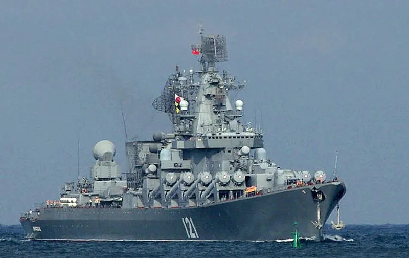 طراد الصواريخ الرائد لأسطول البحر الأسود الروسي «موسكفا» (أ.ف.ب)