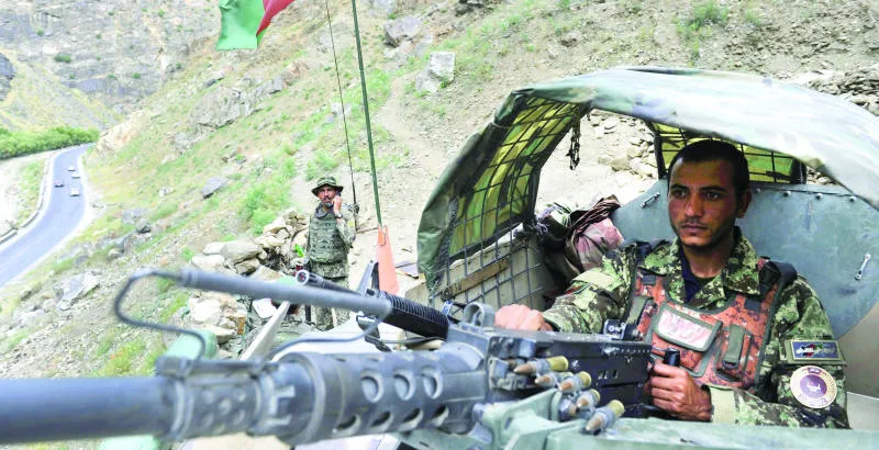 نقطة تفتيش ومراقبة من جنود الجيش الأفغاني على الطريق السريع خارج العاصمة كابل (إ.ب.أ)