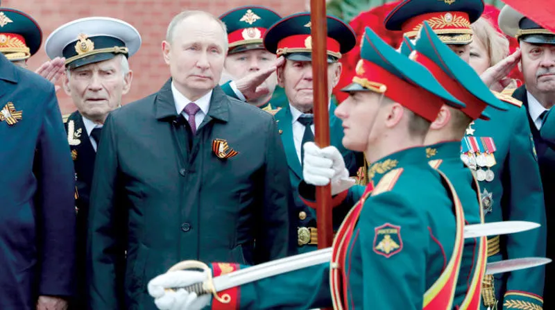 بوتين خلال استعراض عسكري بمناسبة «عيد النصر» العام الماضي (أ.ب)