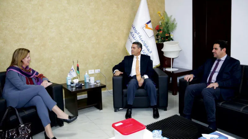 صورة وزعتها المستشارة الأممية لاجتماعها مع رئيس مفوضية الانتخابات الليبية في طرابلس