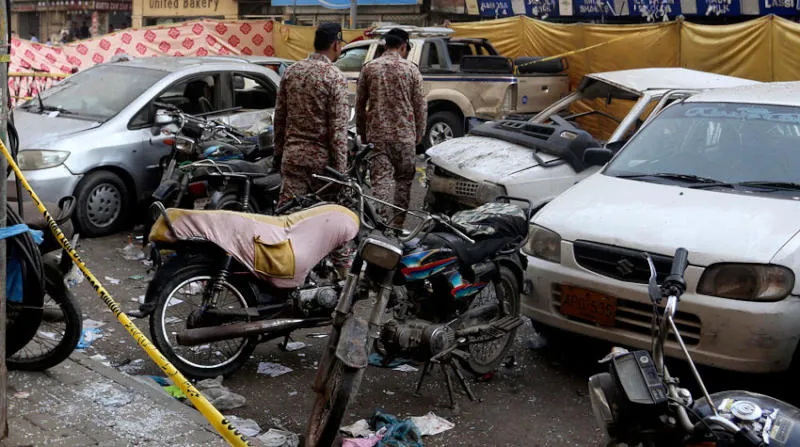تفجير إرهابي وقع في سوق صدر بمدينة كراتشي الباكستانية الخميس الماضي (أ.ب)