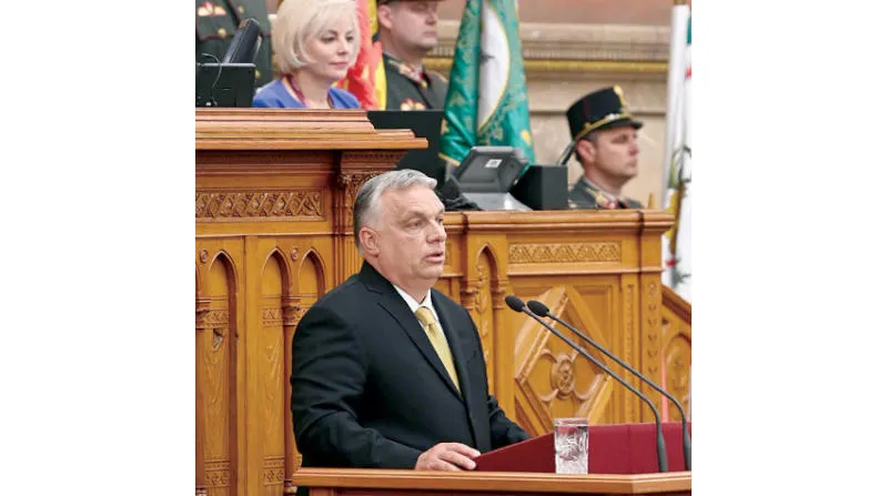 فيكتور أوربان خلال حفل تنصيبه لولاية رابعة متتالية رئيساً للحكومة يتهم رئيسة المفوضية الأوروبية بأنها «تلعب على الحبلين» وأن «الغرب يسير إلى الانتحار الجماعي» (إ.ب.أ)
