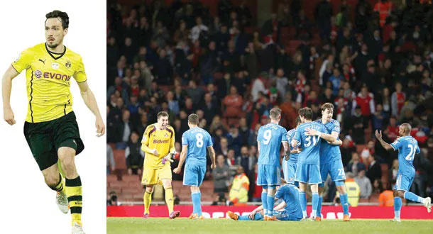 لاعبو سندرلاند يحتفلون بتعادلهم مع آرسنال الذي أمن لهم البقاء بالدوري الإنجليزي الممتاز (أ.ف.ب) - هوملس قرر مواصلة مشواره مع دورتموند («الشرق الأوسط»)
