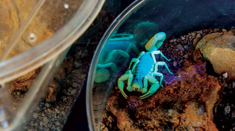 في غرفة صغيرة بـ«متحف الصحراء (أريزونا - سونورا)»، ترفع المشرفة على قسم اللافقاريات، إيما كاليف، صخرة في قلب صندوقٍ بلاستيكي. وتوضح كاليف وهي تعرض عقرباً بطول 3 بوصات، ذيله معقوف فوق ظهره، أنّ «هذا المخلوق واحدٌ من (مُشْعِرات) (الأحياء ذات الشعر) صحرائنا وأكبر عقارب أميركا الشمالية».