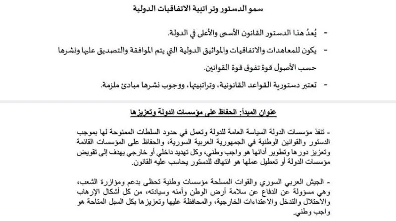 نص اقتراح وفد «هيئة التفاوض» المعارضة حول الدستور والاتفاقات الدولية - نص اقتراح «الوفد المسمى من الحكومة السورية» حول مؤسسات الدولة