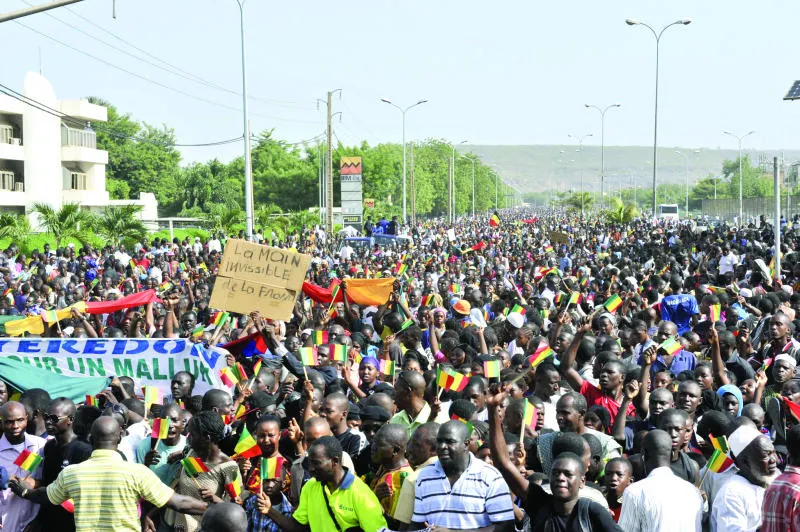 جانب من المظاهرة التي شارك فيها آلاف الماليين في باماكو لدعم اتفاق السلام (أ.ف.ب)