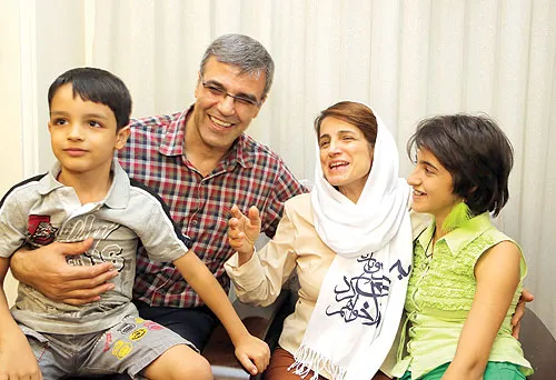 المحامية الايرانية تتوسط عائلتها في منزلها بعد اطلاق سراحها في طهران أمس (إ.ب.أ)