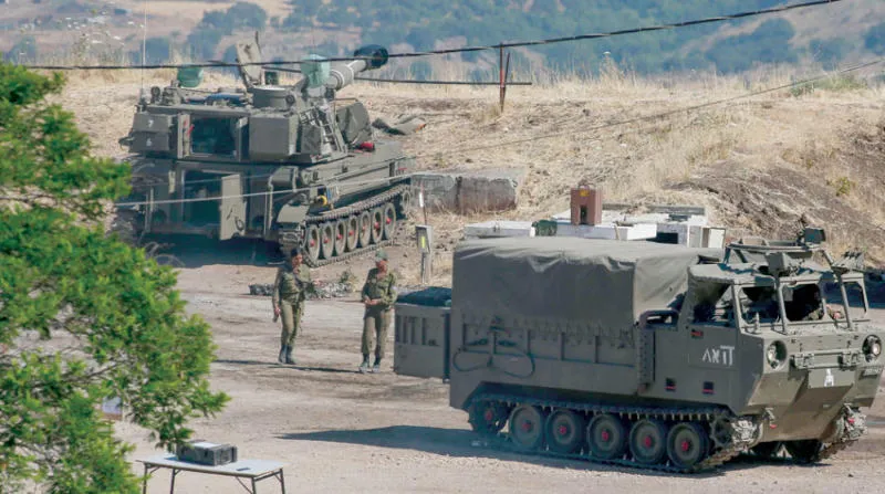 تمارين عسكرية إسرائيلية أمس في منطقة الجولان المحتلة قرب الحدود اللبنانية - السورية (أ.ف.ب)