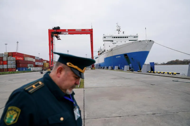عنصر من الجمارك الروسية لدى ميناء في كالينينغراد (أرشيفية- رويترز)