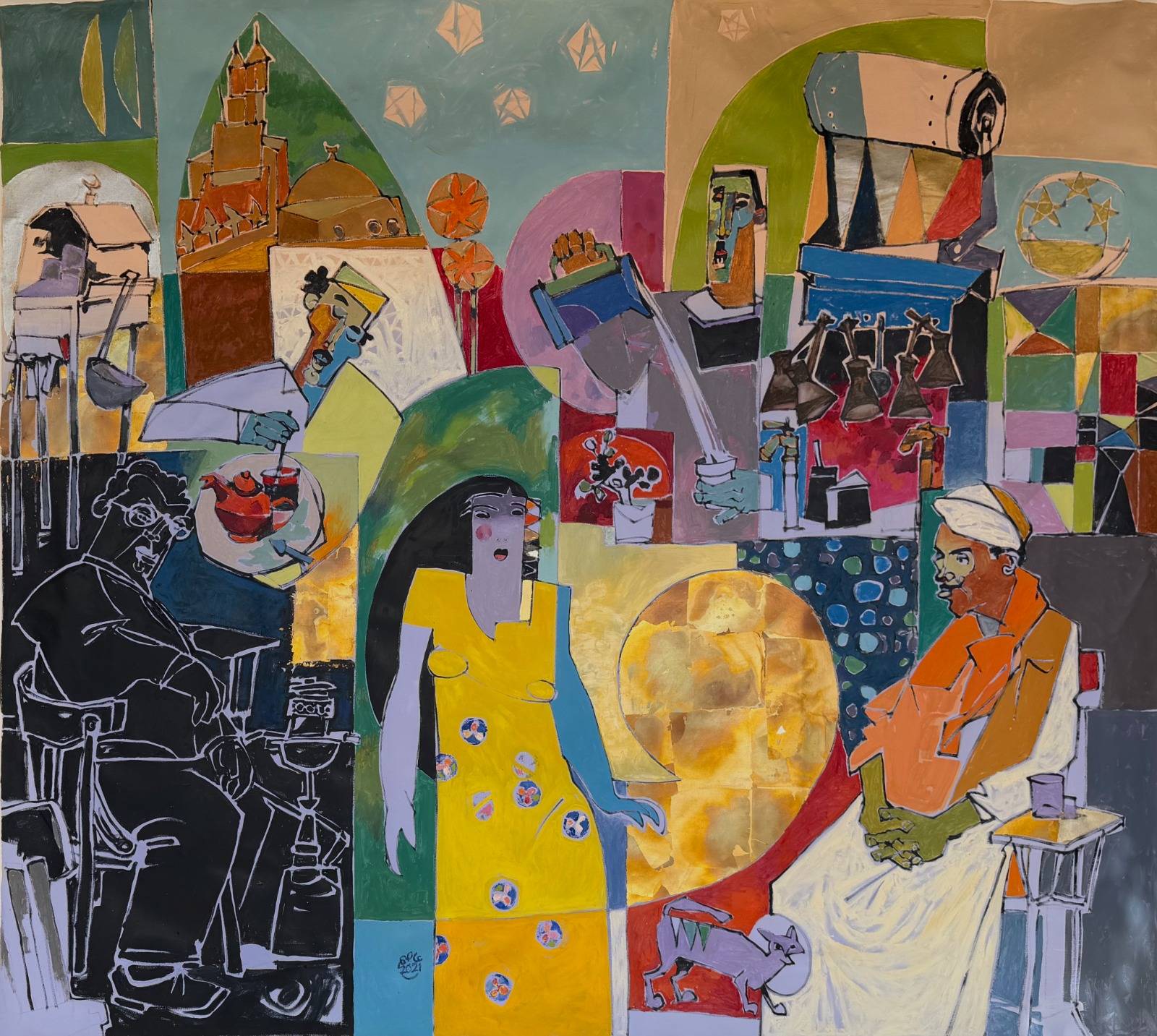 لا نلتقي بالماضي في لوحات المعرض على هيئة ذكريات ثابتة أو أطلال انتهت، إنما بشكل حياة متجدّدة تتكوَّن من وحدات لونية وهندسية تتفاعل مع بعضها في إيقاع واحد، لتكون اللوحة بمنزلة مساحة للحوار بين التراث والحداثة.