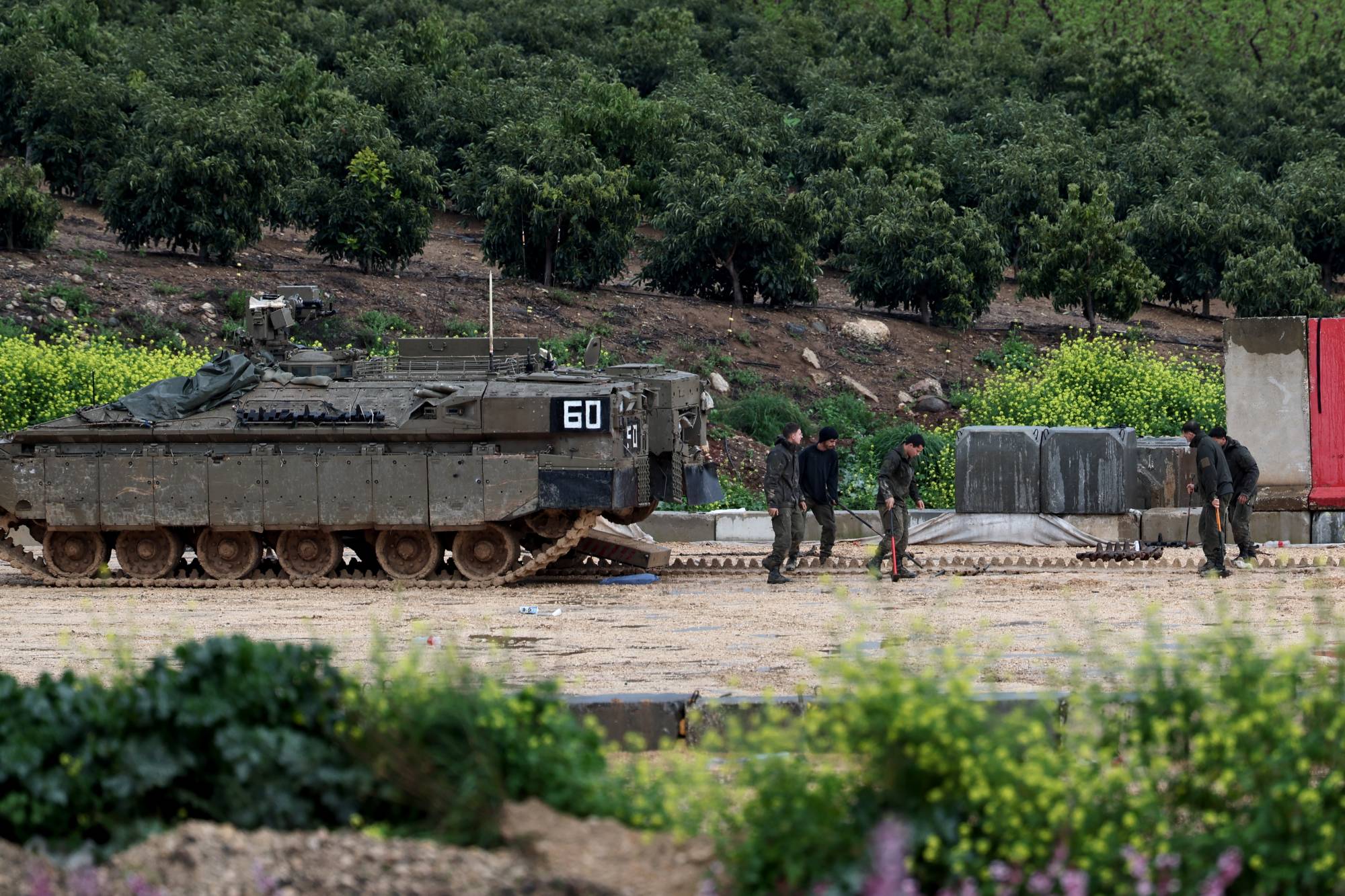 دبابات إسرائيلية في الجانب الإسرائيلي من الحدود مع لبنان (رويترز)