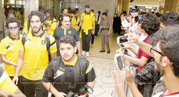 لاعبو الاتحاد لدى وصولهم الرياض أمس (تصوير: بشير صالح)
