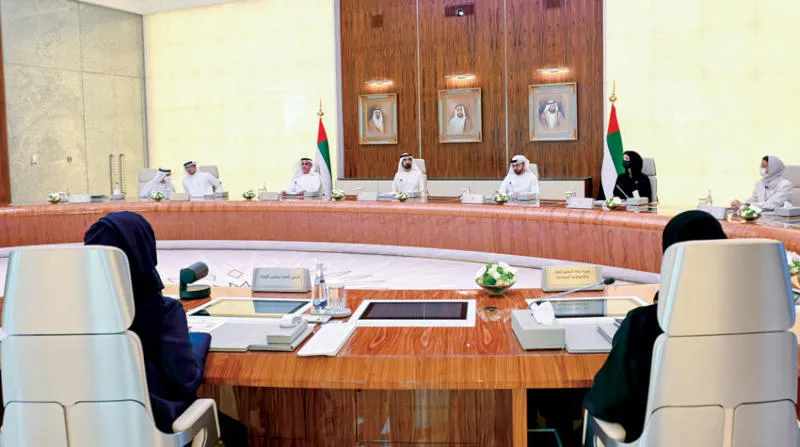 الشيخ محمد بن راشد خلال ترؤسه مجلس الوزراء أمس (وام)