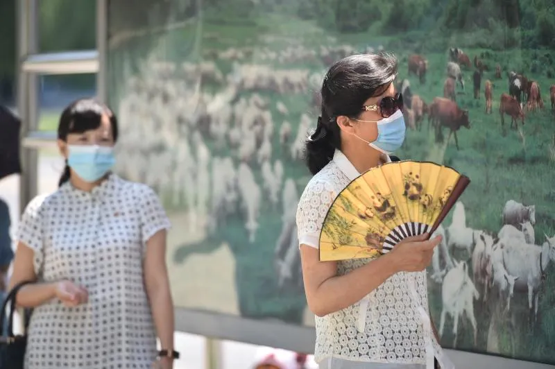 امرأة تستخدم مروحة يدوية خلال الطقس الحار في بيونغ يانغ (أ.ف.ب)