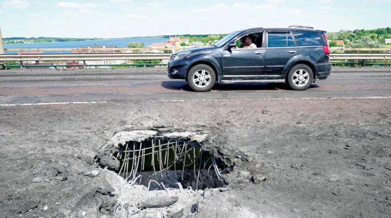 واصلت القوات الأوكرانية هجومها على القوات الروسية المتمركزة قريباً من جسر أنتونيفسكي الرئيسي غرب نهر دنيبرو في خيرسون (أ.ف.ب)