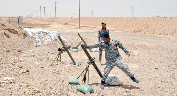 جندي عراقي يطلق قذيفة هاون على مواقع «داعش» غرب سامراء أول من أمس (إ.ب.أ)
