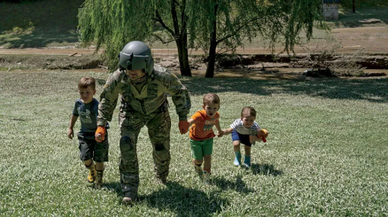 أحد أفراد الحرس الوطني يطلّ على منطقة مغمورة بالمياه في شرق كنتاكي في 29 يوليو (رويترز)
