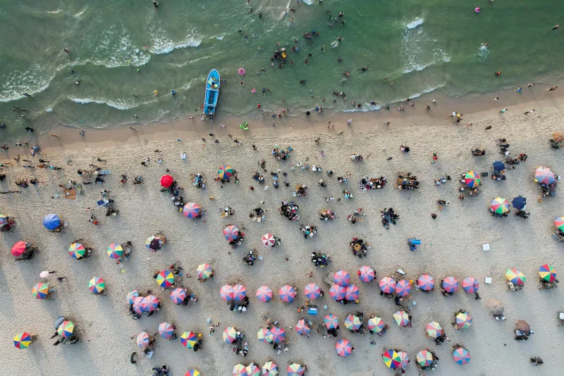 «على البحر شاردين»... معاناة أهالي غزة مع ارتفاع حرارة الجو (صور)