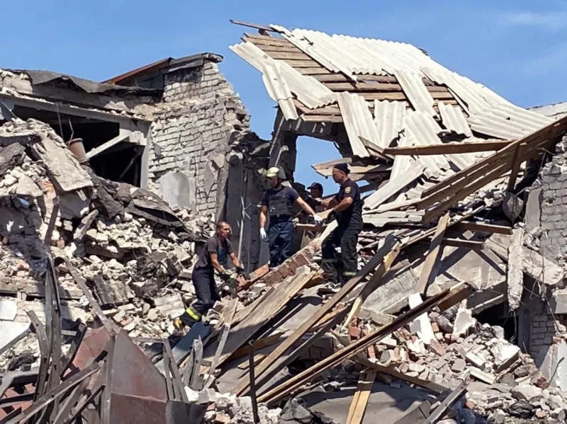 صورة نشرتها خدمة الطوارئ الأوكرانية تظهر رجال الإنقاذ يزيلون الأنقاض بعد غارة على باخموت (أ.ف.ب)