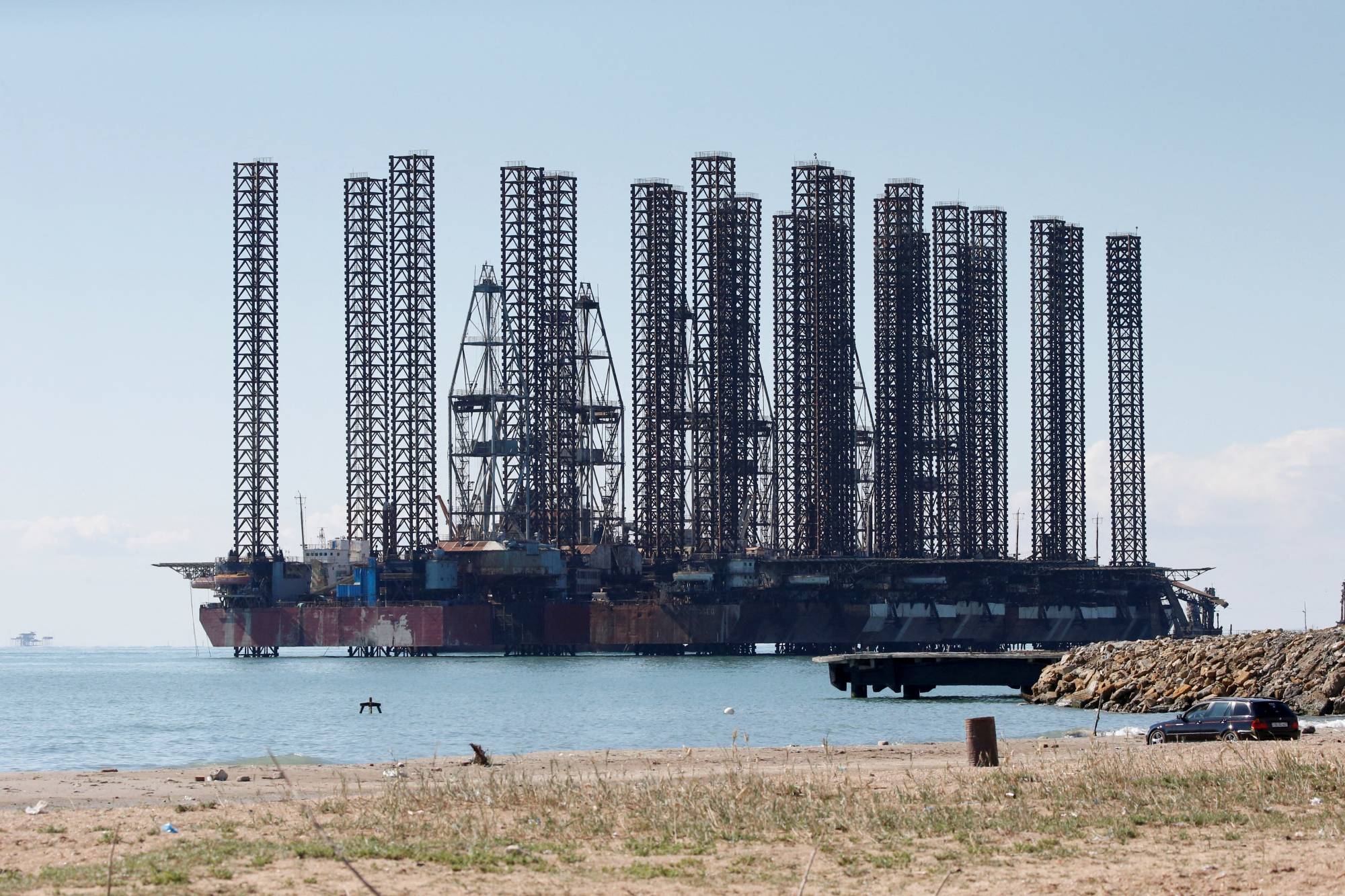 منصة نفطية في بحر قزوين قرب باكو عاصمة أذربيجان (رويترز)