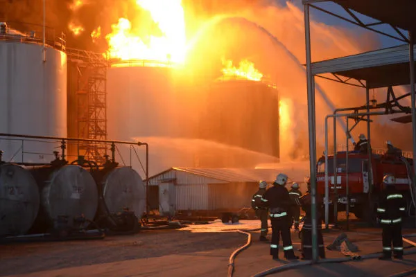وأوضح رئيس هيئة الحالات الطارئة ميكولا تشيتشيتكين لقناة 5 التلفزيونية، أن «انفجارا قويا دوى قرابة الساعة 08:00 (05:00 تغ) واندلعت النيران في عدة صهاريج».