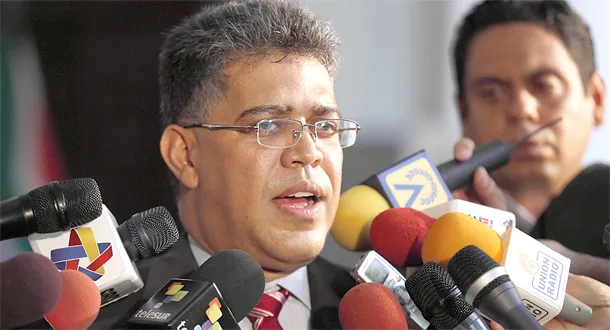 وزير الخارجية الفنزويلي إلياس خوا يندد برفض الولايات المتحدة السماح لطائرة مادورو بعبور أجوائها، خلال مؤتمر صحافي في كاراكاس مساء الخميس (رويترز)
