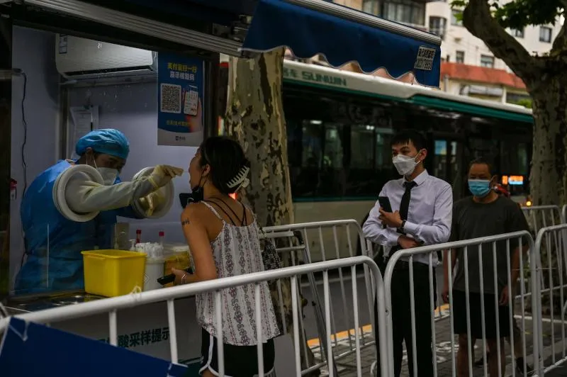 أشخاص يجرون اختبار فيروس «كورونا» في شنغهاي (أ.ف.ب)