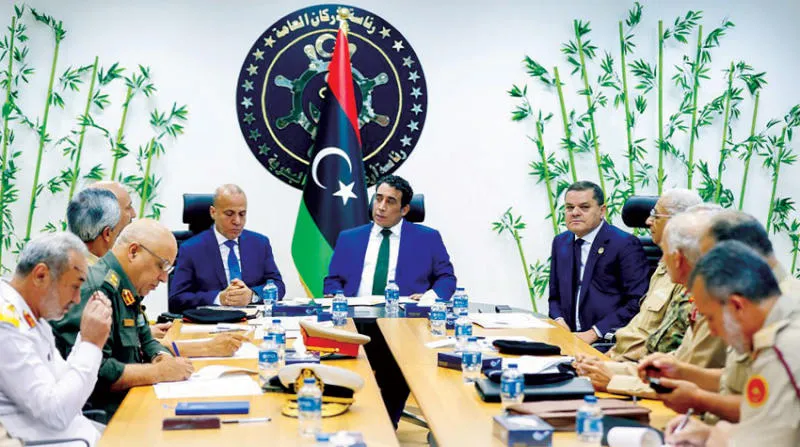 كما شارك الدبيبة، باعتباره وزير الدفاع في الحكومة التي يترأسها، في اجتماع مفاجئ عقده محمد المنفي، رئيس المجلس الرئاسي، مع محمد الحداد، رئيس الأركان بالمنطقة الغربية، وأعضاء اللجنة العسكرية المشتركة (5 + 5) عن المنطقة الغربية، وعدد من رؤساء الأركان العامة. وقال بيان للمجلس الرئاسي إن الاجتماع، الذي حضره أيضاً آمرو المناطق العسكرية الغربية، ومكافحة الإرهاب، وجهاز الحرس الرئاسي والاستخبارات، بحث آخر المستجدات العسكرية، ومسار عمل لجنة «5 + 5»، والخطوات المتخذة لتوحيد المؤسسة العسكرية، بعيداً عن كل التجاذبات السياسية، ومتابعة استمرار وقف إطلاق النار، والمحافظة على الاستقرار الأمني في العاصمة.