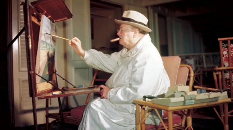 تشرشل وهو يمارس هواية الرسم (غيتي)