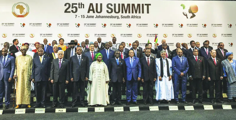 صورة جماعية لزعماء افريقيا خلال قمتهم في جوهانسبورغ أمس (أ.ف.ب)